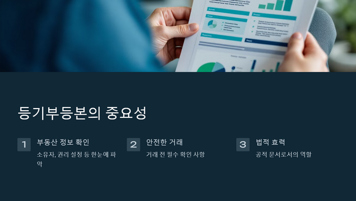 등기부등본은 부동산의 소유자 정보와 권리 관계를 확인할 수 있는 공식적인 서류입니다. 부동산 거래 시 소유권 이전, 근저당 설정 여부 등을 확인하기 위해 필수적으로 활용됩니다.